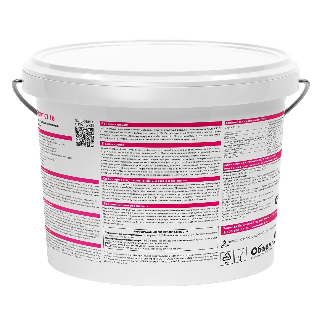 Грунтовка CT 16 поставляется полностью готовой к применению.